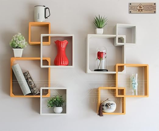 • Designer Intersecting Wall Shelves (Set of 8) (Yellow, White)